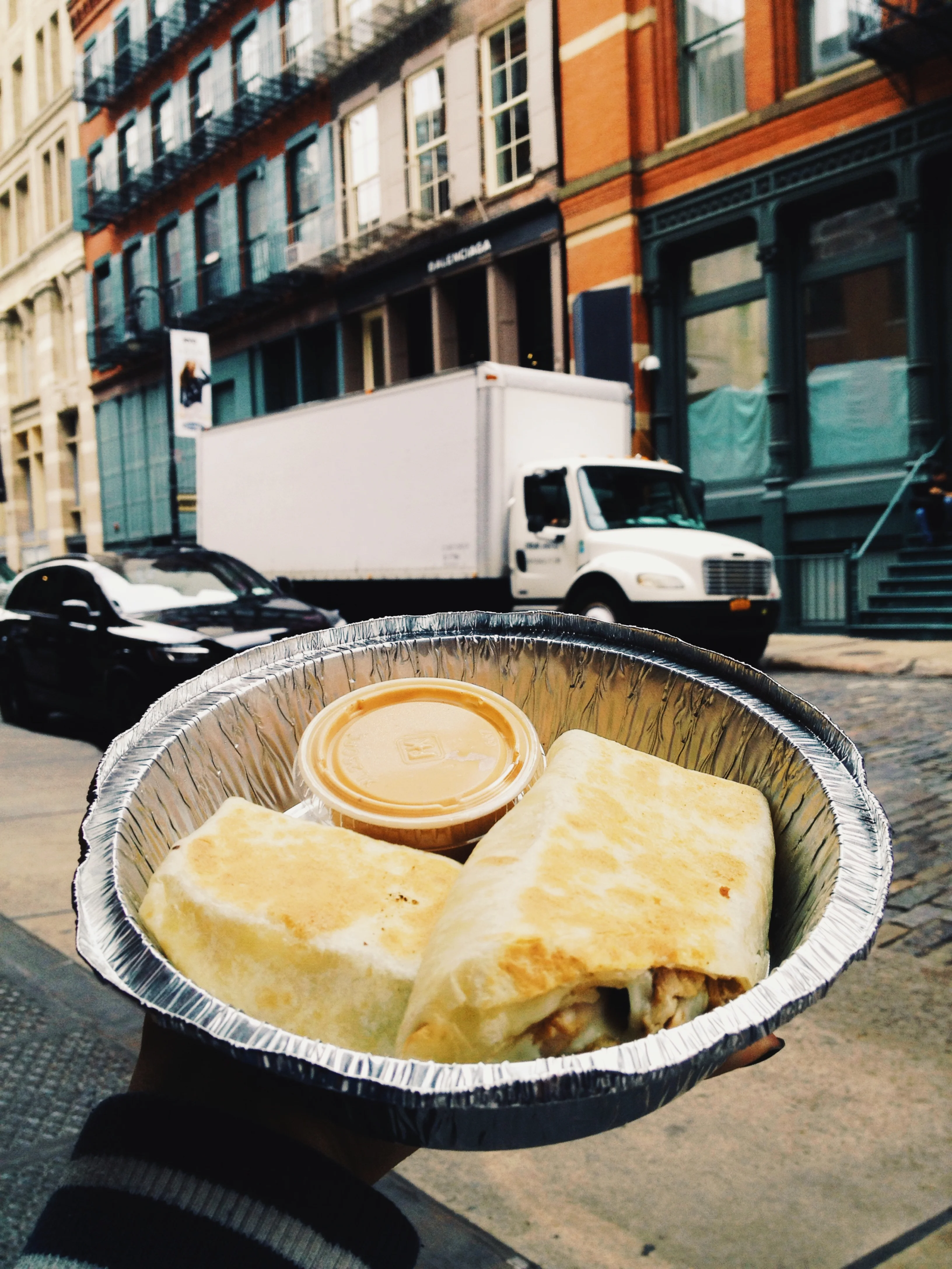 The Calexico location I’m talking about here is the one on Wooster Street, which is a food truck. There is good reason why the line at peak lunch hour extends down the block. But don’t let that deter you- the chefs have quite the efficient system and no matter how long the line is, the wait is never as bad as it seems. Maybe stop in Sabon around the corner and pamper yourself with their free hand washing treatments, a short burst of cleanliness that will soon be obliterated by drips of cheese and oil. The chefs call out your name when your order is ready, and once your meal is collected try to find a place to sit outside. Head to the previously-recommended haunt outside the Mercer Hotel (see Soup Kiosk for the whole story), or any stoop that suits your fancy. And then enjoy, enjoy, enjoy.